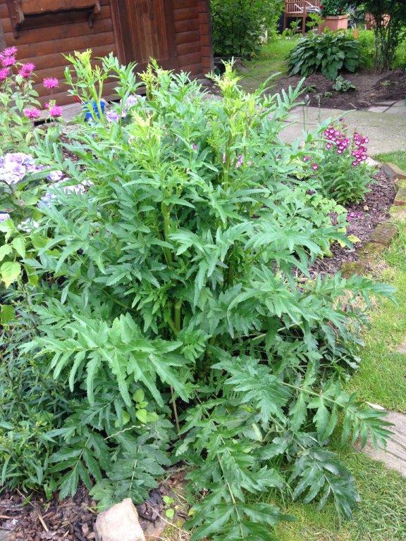 In diesem Jahr sind an 3 Stellen unseres Gartens Blattstängel erschienen. An 2 Stellen blieben diese Stängel ganz niedrig, pro Pflanze 1-2 Stängel.