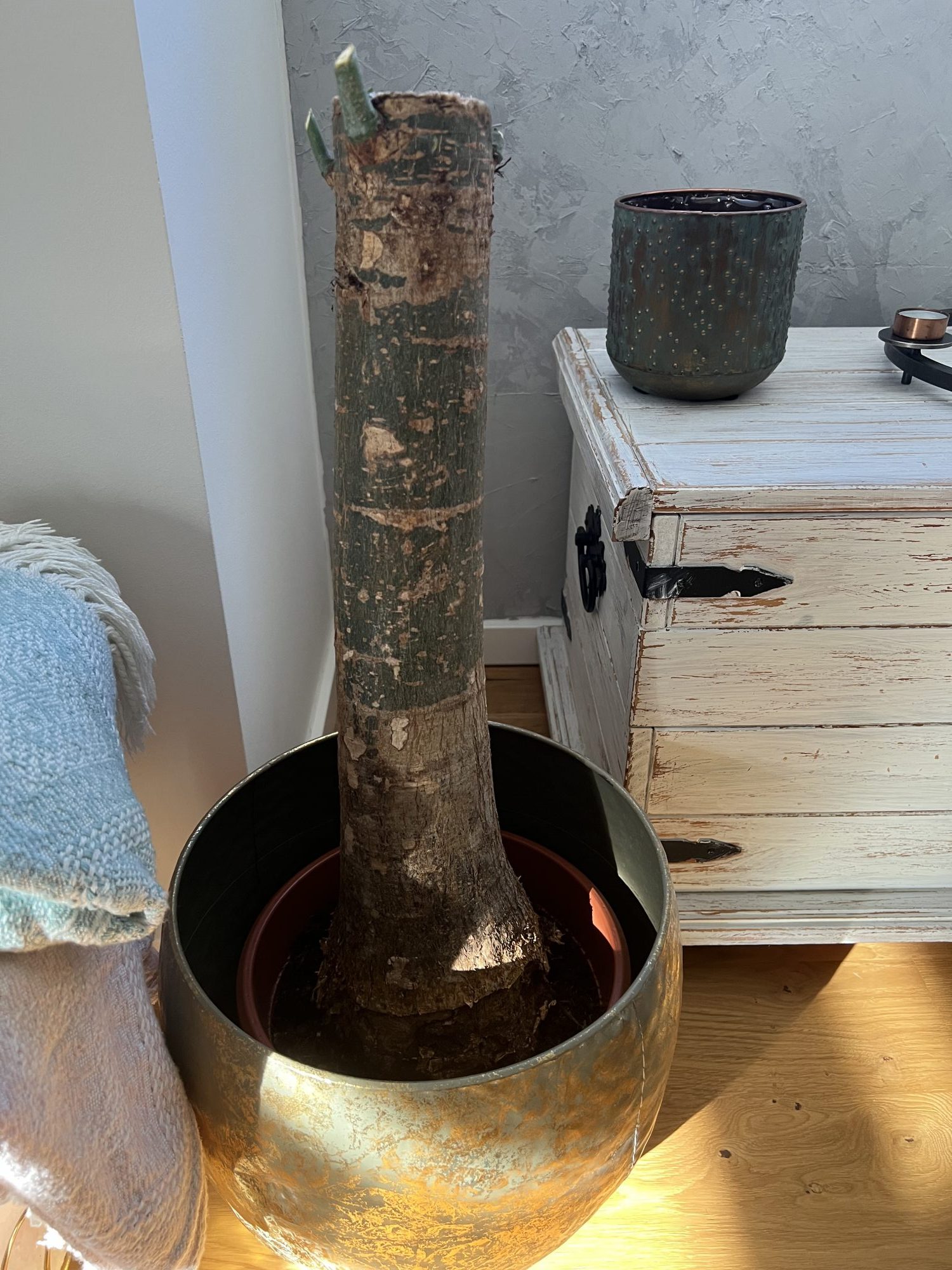 Meine Frage, kann der Stamm neu treiben bzw. kann ich die Pflanze doch noch retten, bevor sie in den Biomüll landet? Muss ich dazu in dem Stamm Kerben einschneiden? Ich habe die vier Triebe komplett wegschneiden müssen, bis knapp unter der Stelle, an der sie abgeknickt waren. Oder wachsen die da dann nach? Wie oft muss ich gießen? Was müsste ich noch beachten?