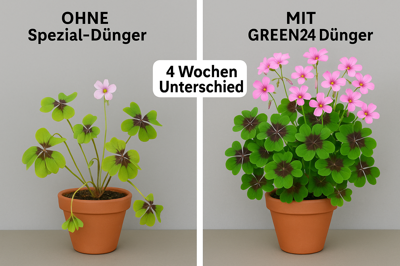 Oxalis tetraphylla und anderen Sauerkleegewächsen entwickelt. Die Kombination aus sofort verfügbaren Nährstoffen dank Chelat-Technologie, dem Wurzel-Booster-Komplex und der Blatt-Vital-Formel garantiert eine optimale Versorgung in jeder Lebensphase. Vertrauen Sie auf geprüfte Premium-Qualität "Made in Germany" für einen Glücksbringer, der seinem Namen alle Ehre macht.