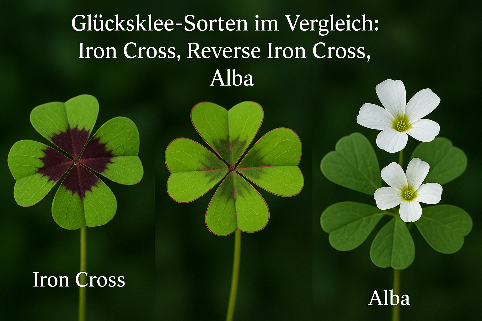 Glücksklee-Sorten im Vergleich: Iron Cross, Reverse & Alba