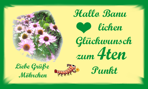 Ja auch von Mir die allerherzlichsten Glückwünsche an Banu und alle, die sich noch ein weiteres Pünktchen verdient haben!!! Liebe Grüße Jenny