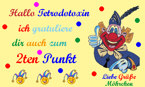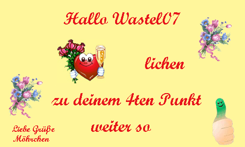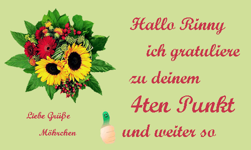 vielen lieben Dank für meinen vierten Renomeepunkt, ich weiß jetzt so garnicht genau wann ich den bekommen habe. Aber letzte Woche war der glaube ich noch nicht da.