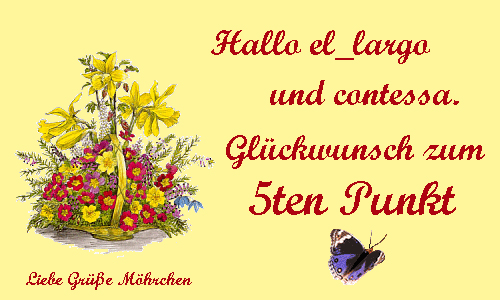 Möhrchen und Bonny und allen die so schöne Bildchen einfügen auch mal ein Danke ich finde das nämlich sehr schön. Nur leider bringe ich das nicht (noch nicht)