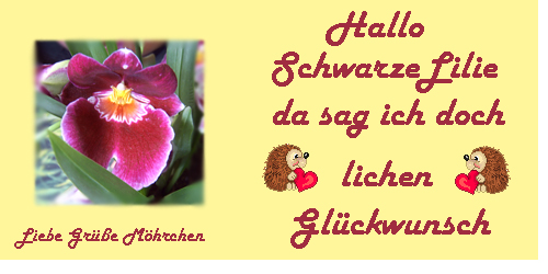 Zitat geschrieben von RhoendistelHuhu liebes Lilchen!Zwar schon per PM gratuliert - aber hier noch mal öffentlich!GRATULATION! LG Distelchen Distelchen Danke
