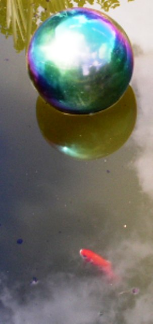 Dann eines Tages machte es laut "Platsch". Ein Reiher flog über unseren Teich und hat etwas aus seinem Schnabel verloren!