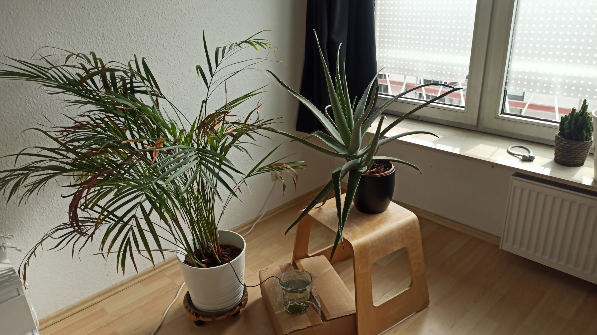 - Sie steht ungefähr 1,60 m entfernt von einem Südfenster.