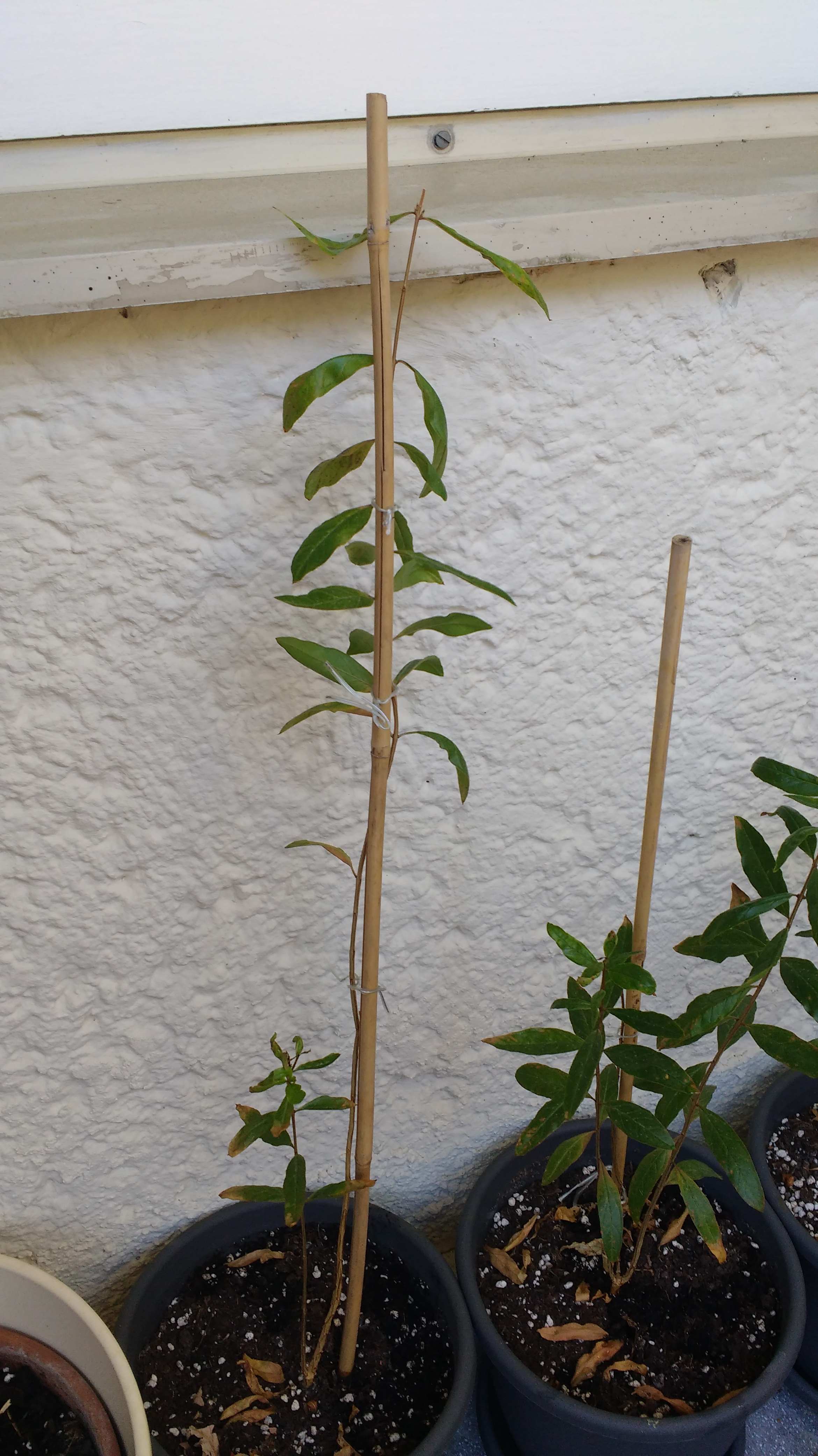 Es handelt sich dabei um vier Granatapfel-Bäumchen (nicht alle im Bild). Seit ca. Monaten kränkeln diese. D.h. oben fallen die Triebe ab, die Blätter werden grau/braun/ gelb und die Pflänzchen verholzen. Kann mir jemand sagen, was das Problem ist. Die Pflanzen habe ich vor ca. 8 Monaten umgetopft. Dünger bekommen sie sehr wenig. Gegossen wird regelmäßig, die Erde ist jedoch nie zu feucht.