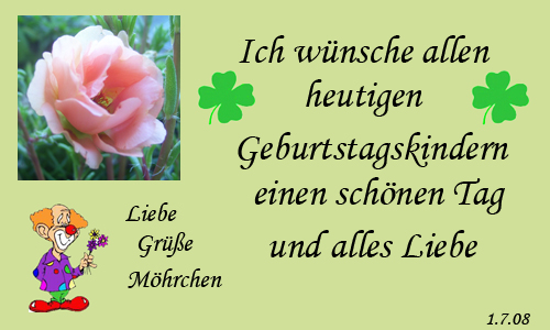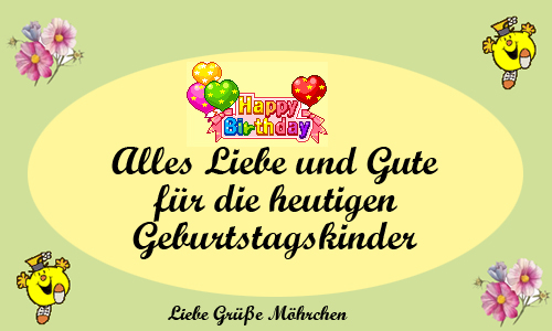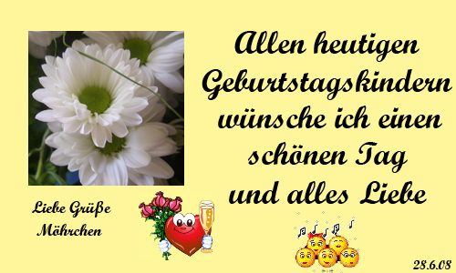 Den heutigen Geburtstagskindern wünsche ich alles Gute und beste Gesundheit.