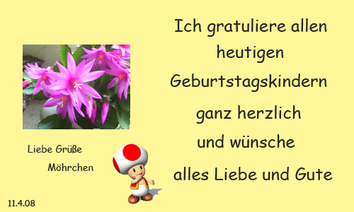 | II.Gratulationen aller Art, Geburtstage, Titel, Renomee uvm. | Aus aller Welt & Off Topic | daylily | 345 |