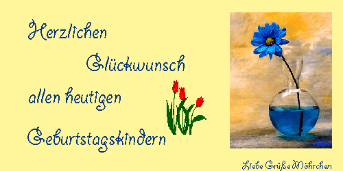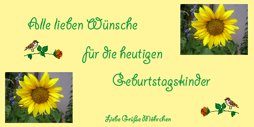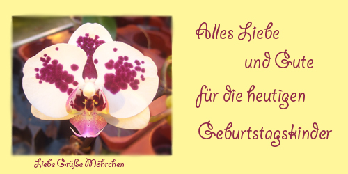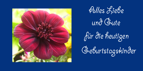 Allen heutigen Geburtstagskindern und ganz besonders Jutta/Pflanzenfreund Herzlichen Glückwunsch zum Geburtstag!!! Lasst Euch schön feiern!