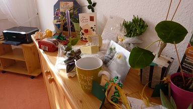 Ein besonderes Dankeschön für das Riesenpaket mit vielen, liebevoll ausgesuchten Geschenken, Pflanzen,, Stecklingen, Leckereien, süßen Postkarten von meiner "Greenie-Familie". Hätte nie gedacht, dass mir so viele User eine Freude machen würden . Laßt Euch ganz liebevoll drücken