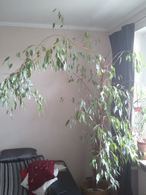 Er ist ca Dez-Feb. zu uns gezogen. Davor stand er bei meiner Schwiegermutter. Da diese aber nur eine dunkle Ecke für ihn hatte und er auf einer Seite kkahl wurde hat sie ihn mir gegeben weil ich eigentlich fast alles wieder zum blühen bekomme. Doch diesmal bin ich mit meinem grünen Daumen am ende.