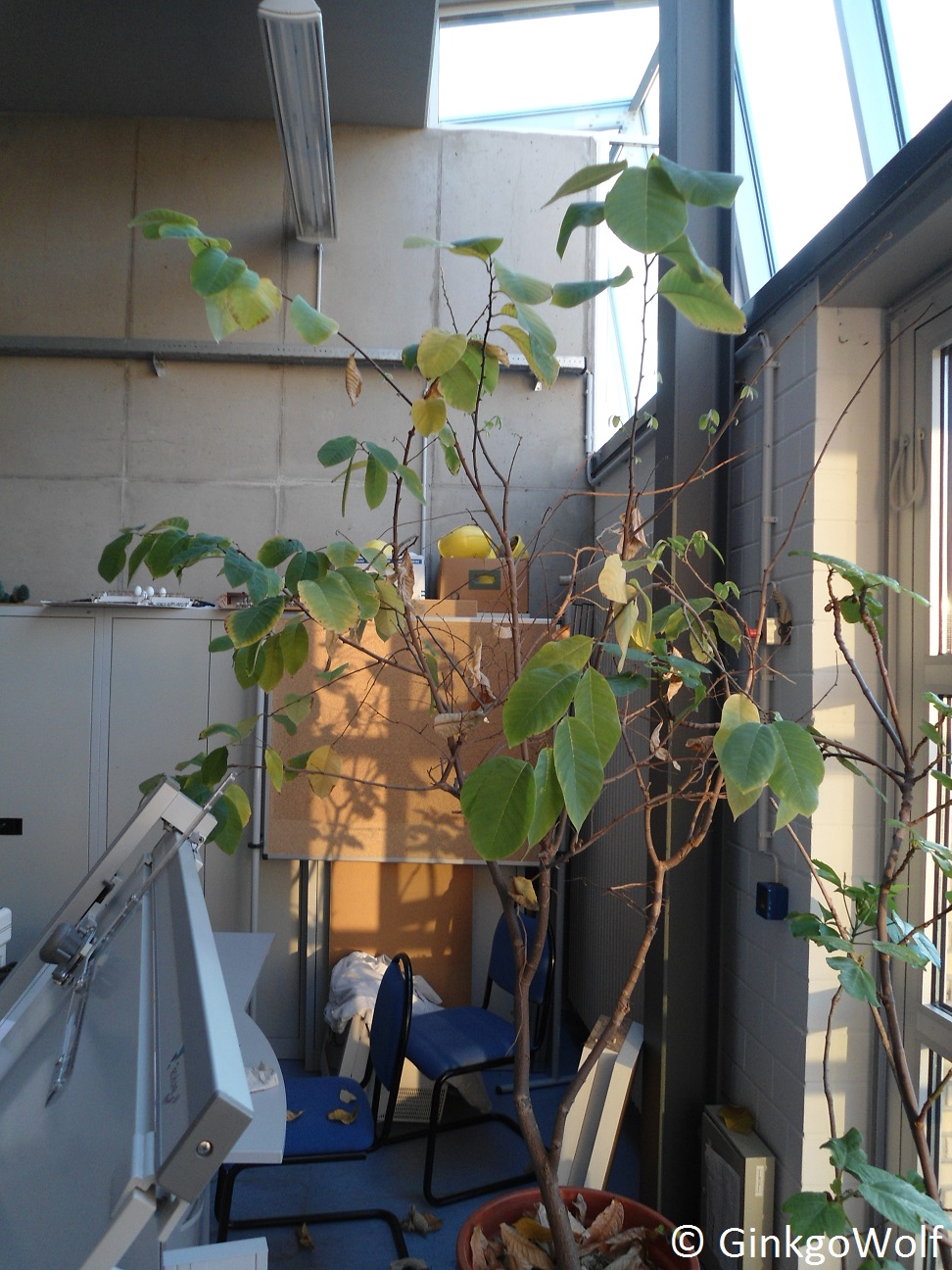 Dieses Mal geht es um einen ziemlich großen Zimmer- (?) Baum, der in einem der Arbeitsräume meines Profs steht. Bitte nicht wundern, bei dem Guten ist zur Zeit leider Herbst angesagt auch deshalb wüsste ich gern, wie die Pflanze heißt, weil ich mich dann schlau machen könnte, was dem Guten mgl. fehlen könnte...