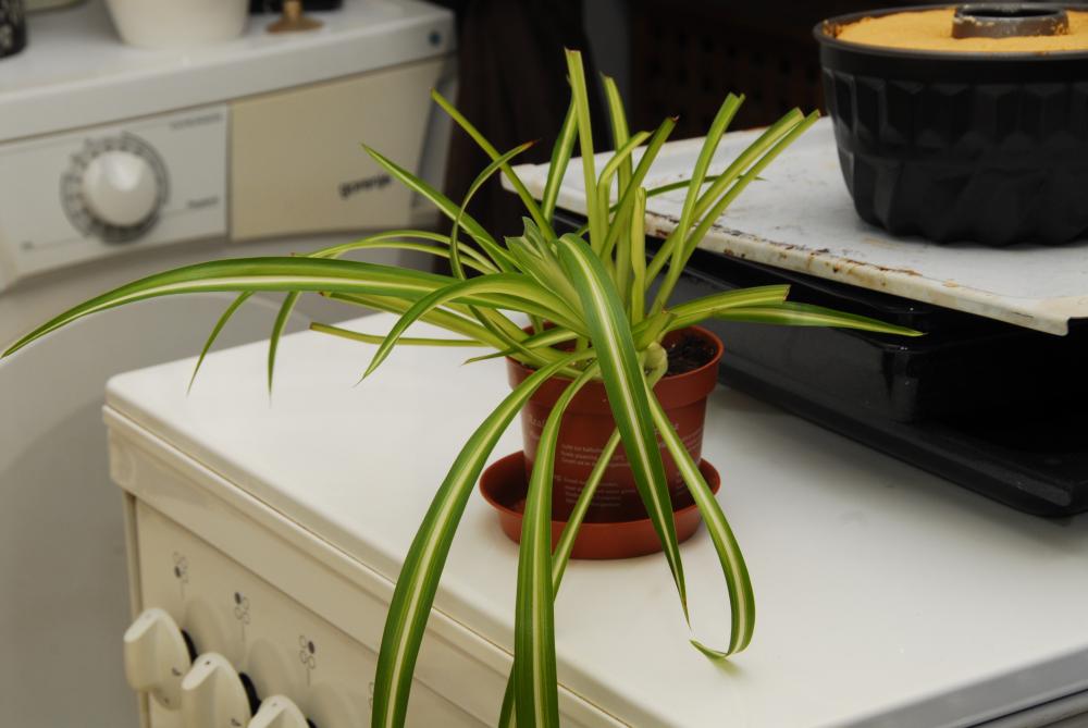 Nachdem mein Kater meine Grüne mit weißen Streifen fast komplett inhaliert hat, habe ich sie in einen geschützten Raum gebracht und nun bei schönem Wetter draußen. Sie gedeiht prächtig!