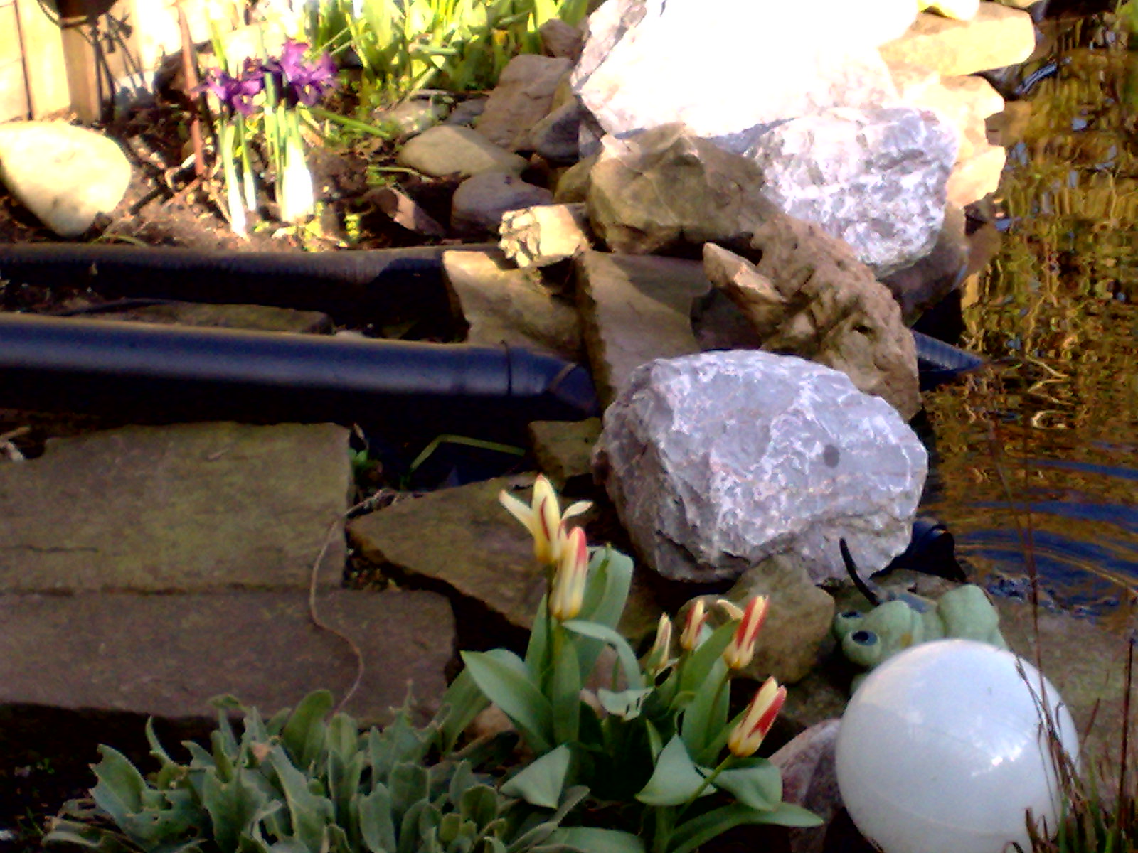 die Tulpen sind im Herbst gesetzt....des weiteren blühen die ersten Hyazinthen und die kleinen schnuckeligen Anemonen.....konnt ich aber nicht mehr knipsen, da kam dann Regen und Hagel und dann war zu dunkel...