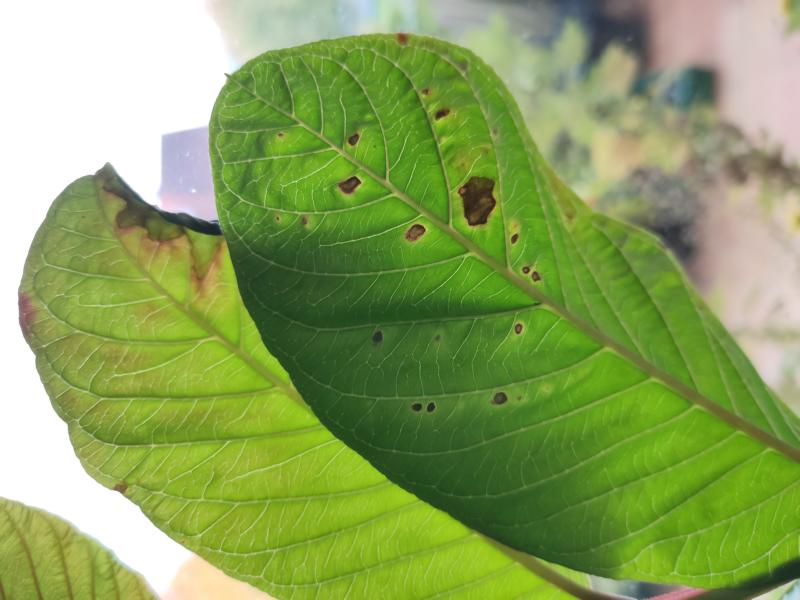 meine ca. 1 Jahr alten, selbstgezogenen Guavenpflanzen bekommen auf/ an den Blättern braune Flecken.