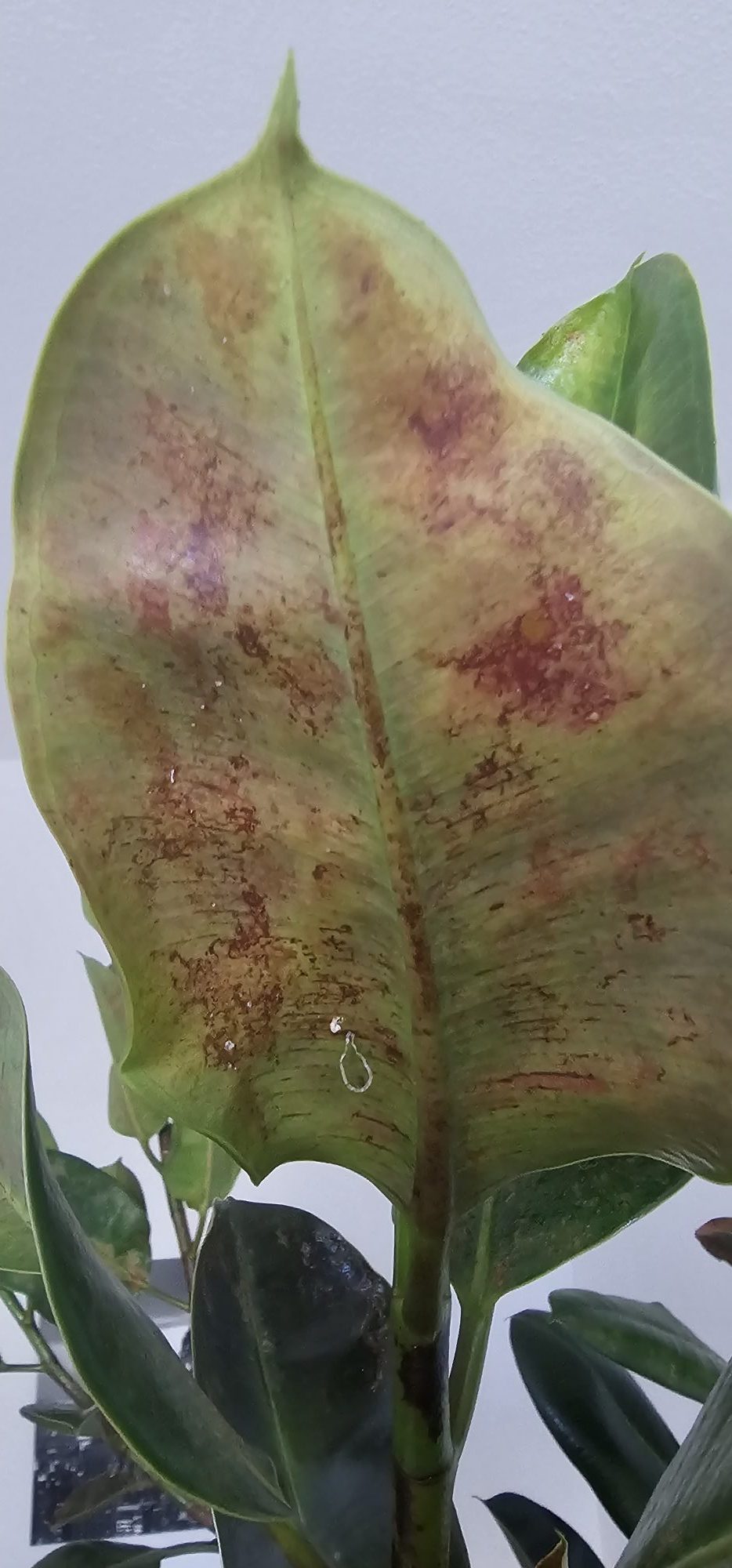 Viele Blätter werden nach und nach gelb und segnen das zeitliche. Neue Blätter sind verkörpert und oft mit schwarzen vertrockneten Flecken.
