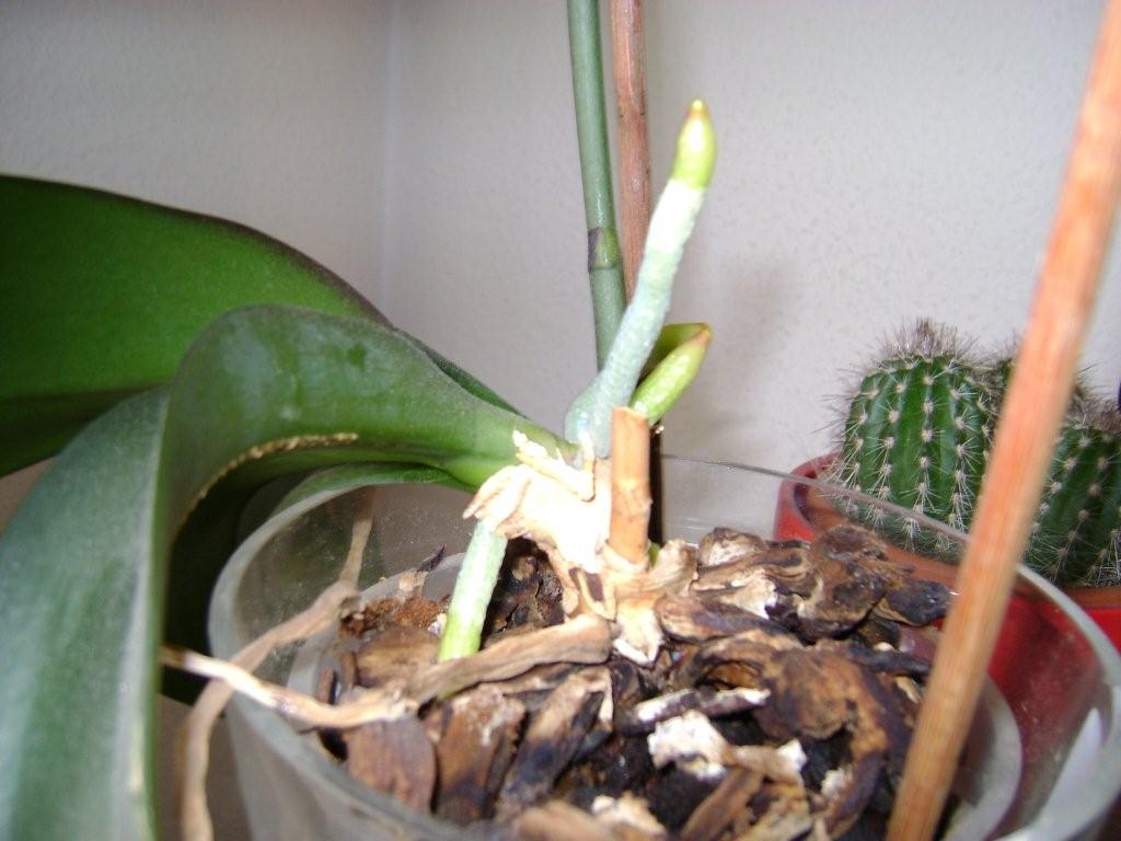 mein 2. problem ist eine phal. ich habe sie jetzt seit 1. 1/2 jahren. sie ist damals abgeblueht. seit dem pflege ich sie. sie hat neue blaetter bekommen und jetzt erscheinen 5 neue triebe, von denen ich nicht weiss, was es genau ist. 2 davon gehen aber senkrecht nach unten, in die erde rein. was tun??