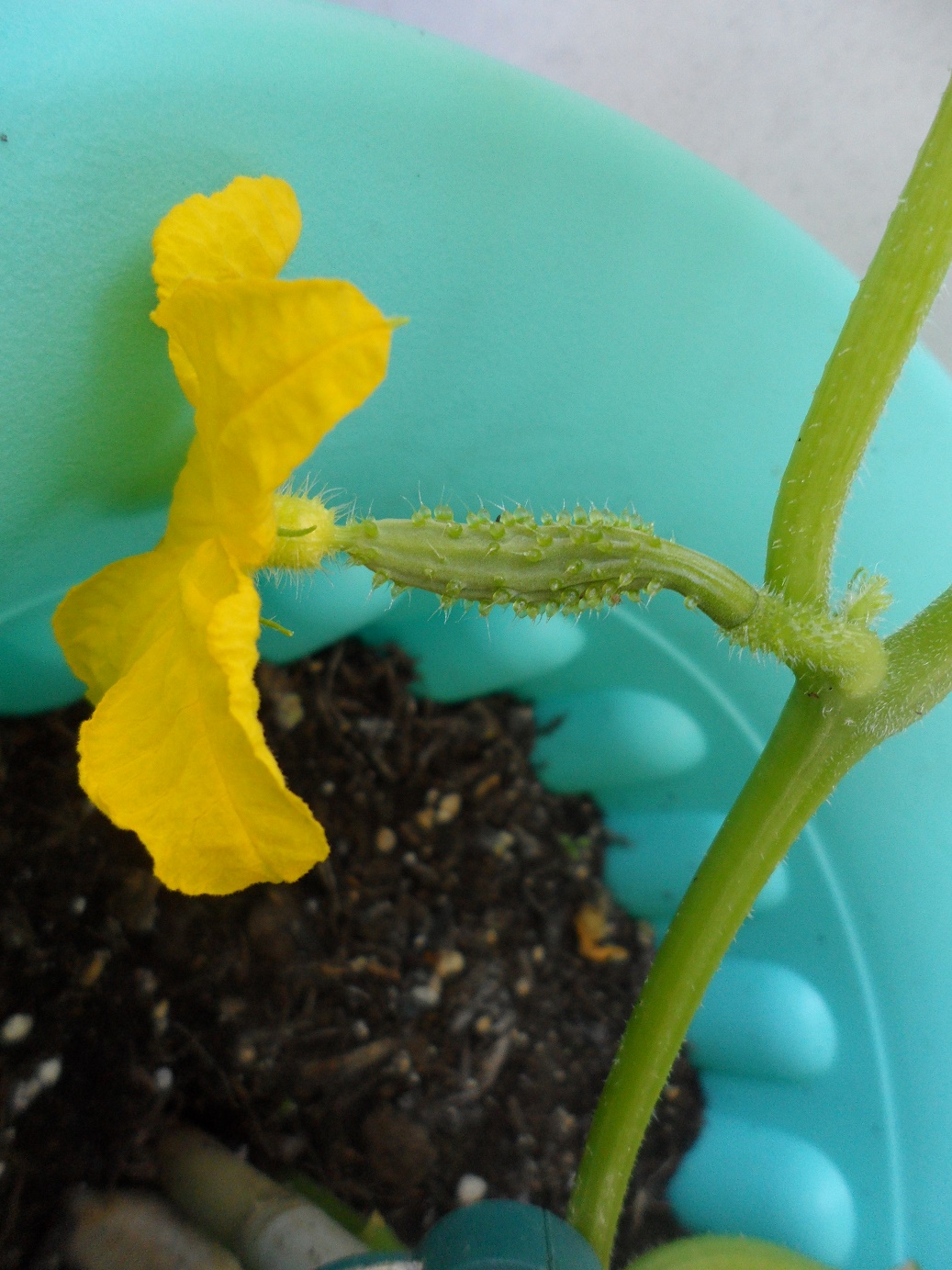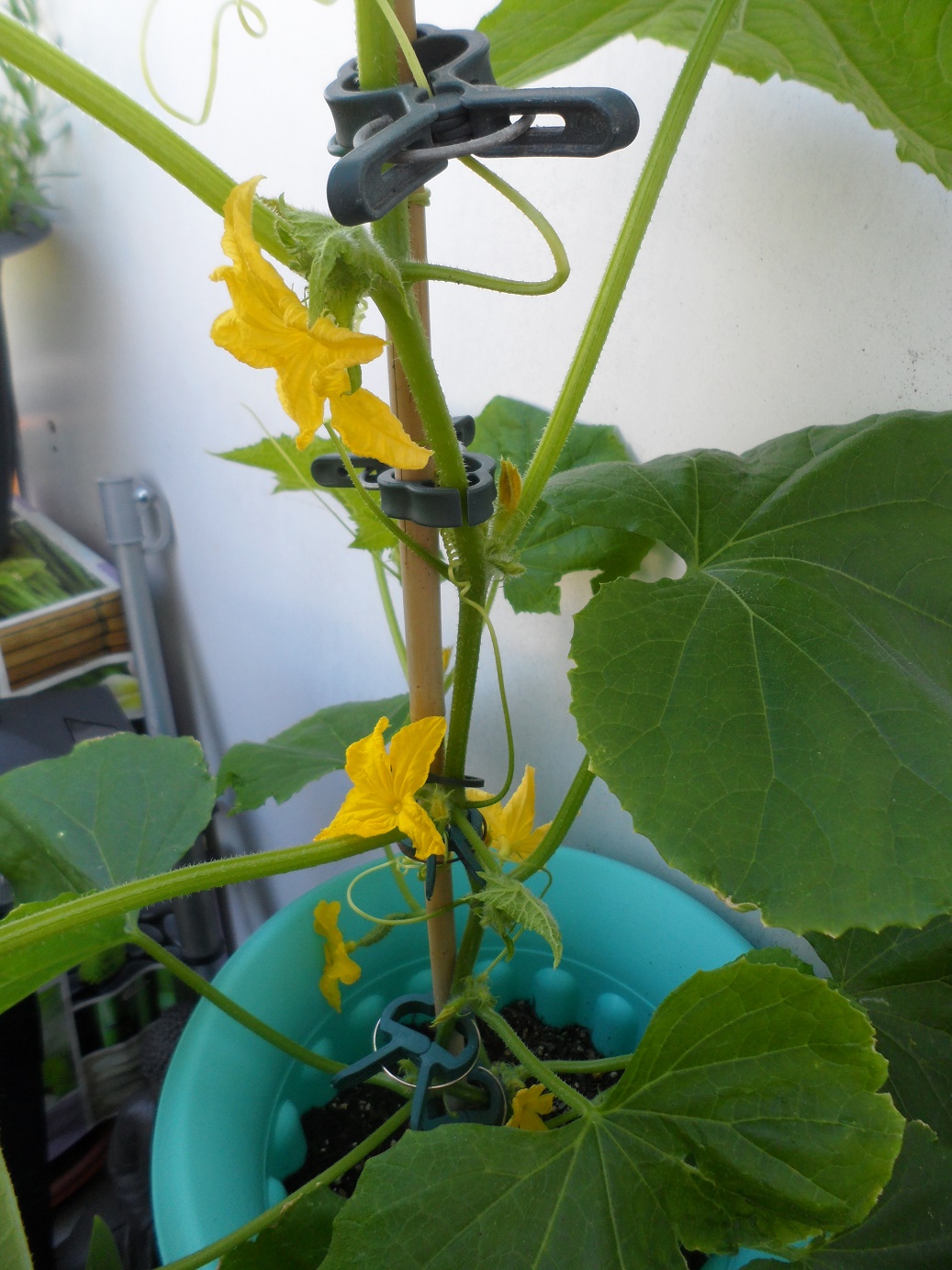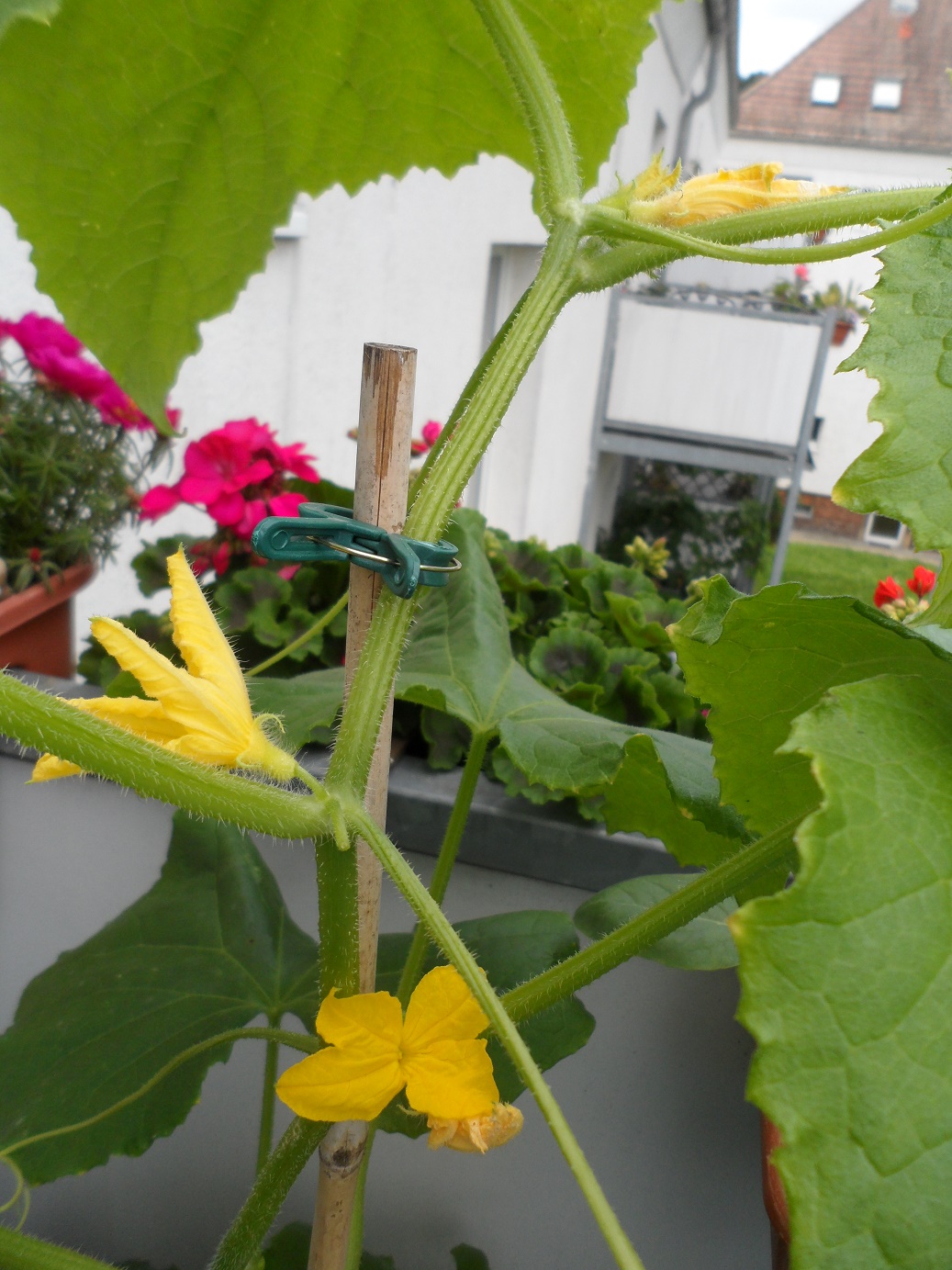 hab durch Zufall eine Gurkenpflanze bekommen(bei Samenbestellung war ein nicht-dazupassender Samen dabei, aus Neugierde eingepflanzt -> Gurkenpflanze war da)
