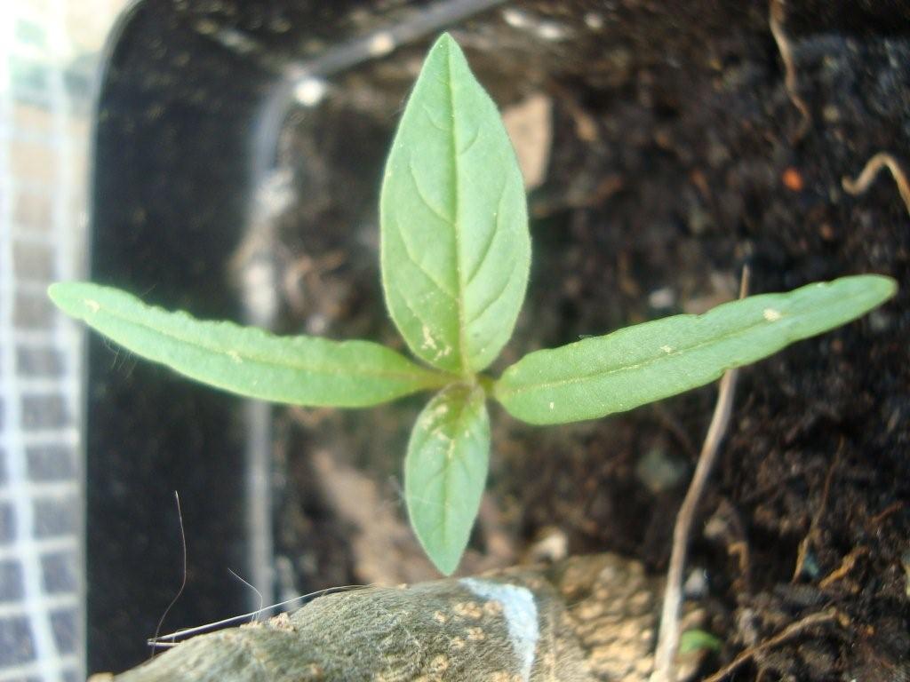 ich hab es mir zur Gewohnheit gemacht, alles was so in meinem Gärtchen oder in den Töpfen sprießt, erstmal stehen zu lassen. Da ich Anzuchterde, aus denen kein neues Pflänzchen kam, generell nicht wegwerfe, sondern die Erde beim Umtopfen älterer Pflanzen wieder verwende, kommt mit der Zeit so nach und nach das eine oder andere Pflänzchen zum Vorschein, an dessen Herkunft ich mich nicht mehr erinnern kann (und das liegt nicht nur am Alter )