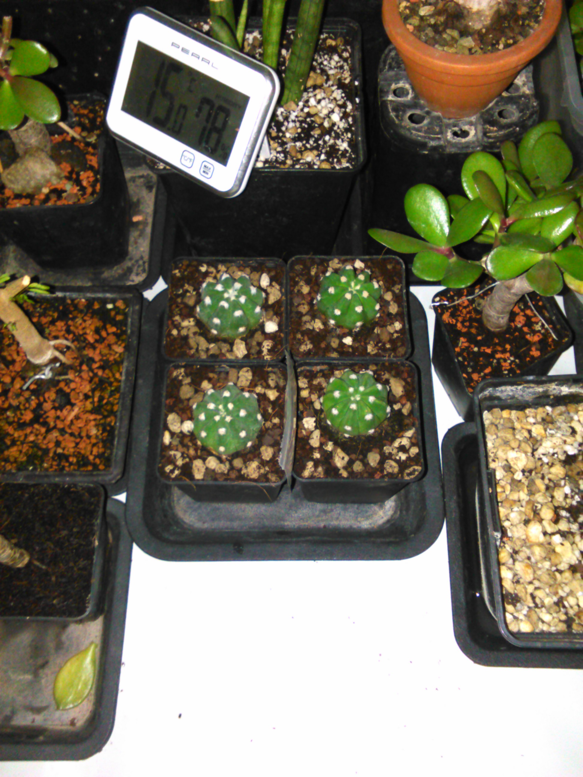 Und dann habe ich vor Kurzem vier Kakteen erstanden. Gekauft im Teddy für 1,25€. Diese Kakteen waren die einzigen die mir gefallen haben und wirklich sehr gesund aussahen. Da dachte ich, ich nehme gleich alle vier Kakteen, weil für 1,25 pro Kaktus kann man nichts kaputt machen. Vielleicht verkaufe ich mal 2 bei ebay, wenn sie größer sind