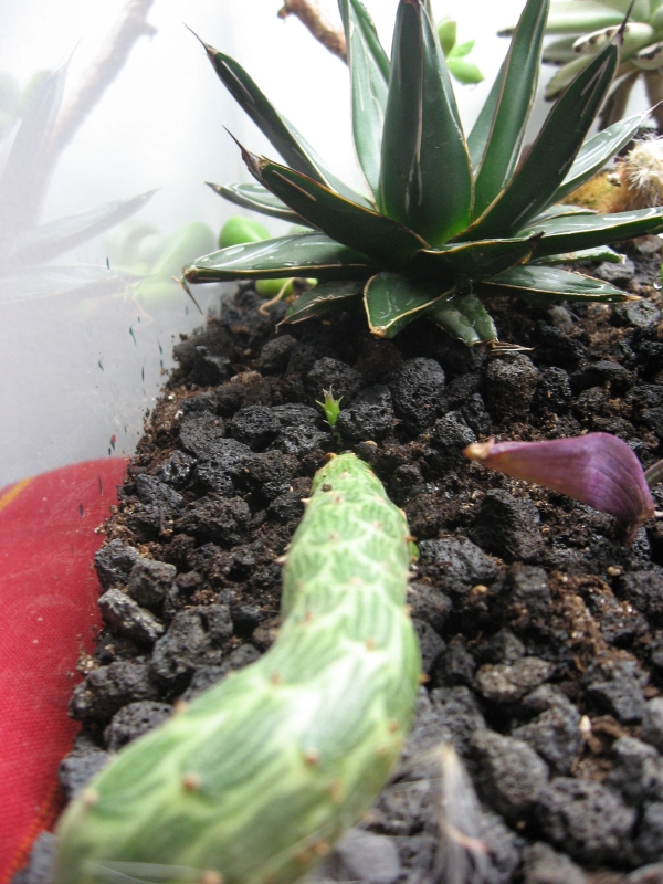 Ich war nun vor 3 Wochen auf Fuerteventura und habe mir von dort, käuflich in einem Botanischen Garten, erworben einige Pflänzchen mitgebracht, die ich in mein zu der Zeit leerstehendes Terrarium eingepflanzt habe.
