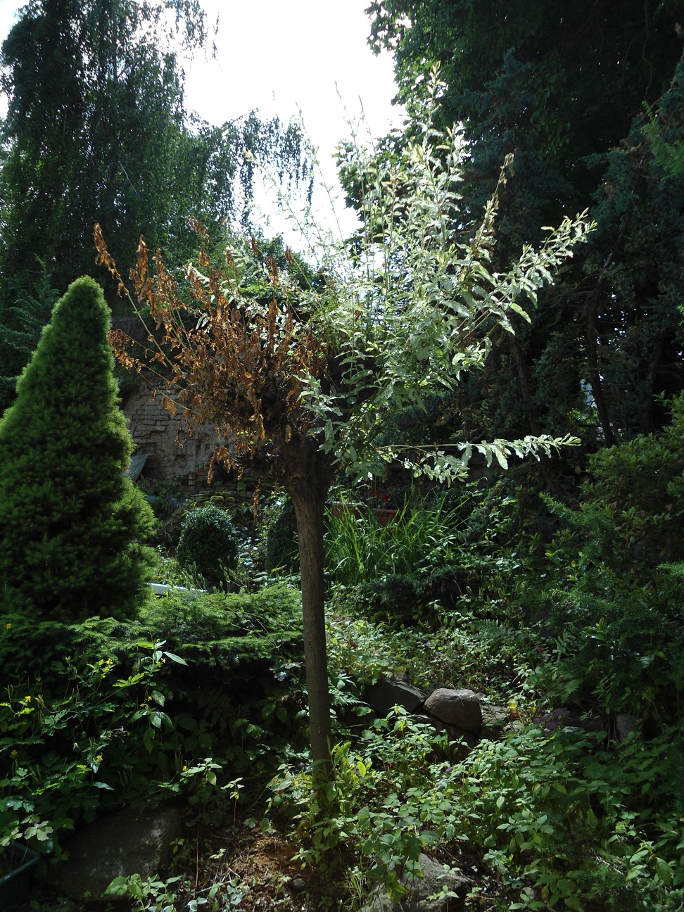 Einzig vitaler Punkt an der Weide befindet sich an der unteren Stammbasis, das ist aber nur die Unterlage für die Harlekin-Weide, die im Hochstamm draufveredelt wurde. Es wäre schade, die Harlekin zu verlieren.