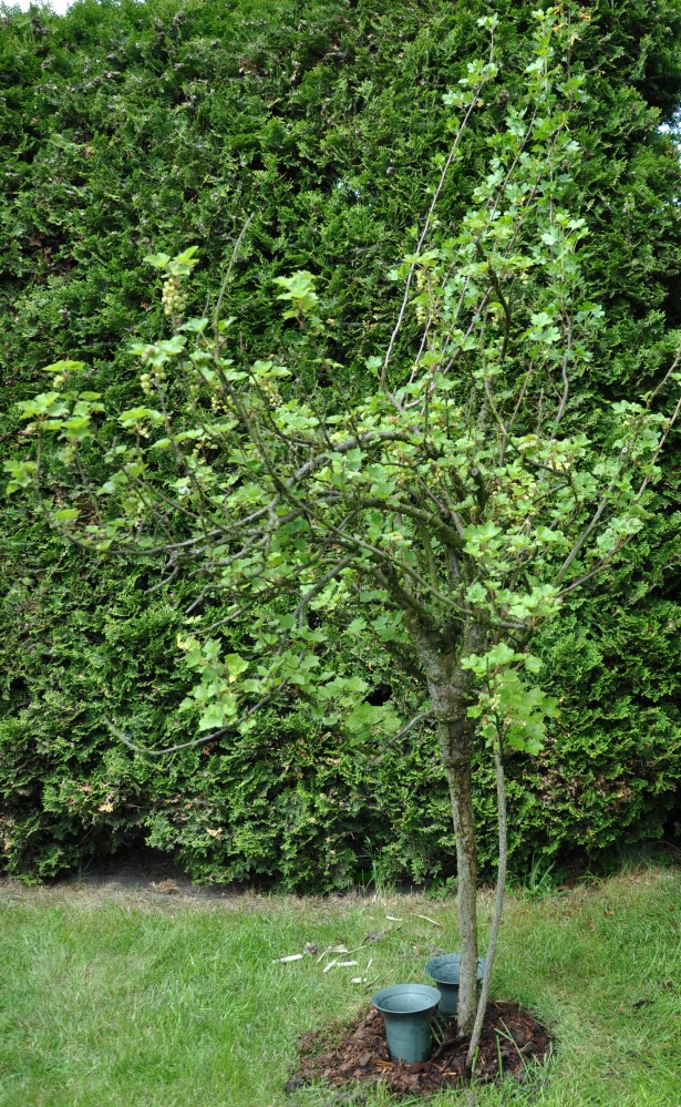 letzte Jahr hatte ich von einem Nachbarn diese Johannisbeere geschenkt bekommen- scheint schon sehr alt zu seit. Dadurch, dass wir beim Ausbuddeln eine größere Wurzel versehentlich gekappt hatten, musste die Johannisbeere ganz schön um das Überleben kämpfen- aber sie hat es geschafft