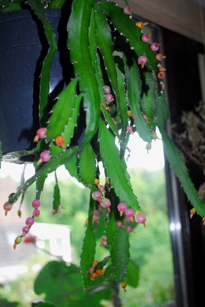 Bei mir hat Lepismium monacanthum massig Früchte angestzt und blüht auch noch dabei....