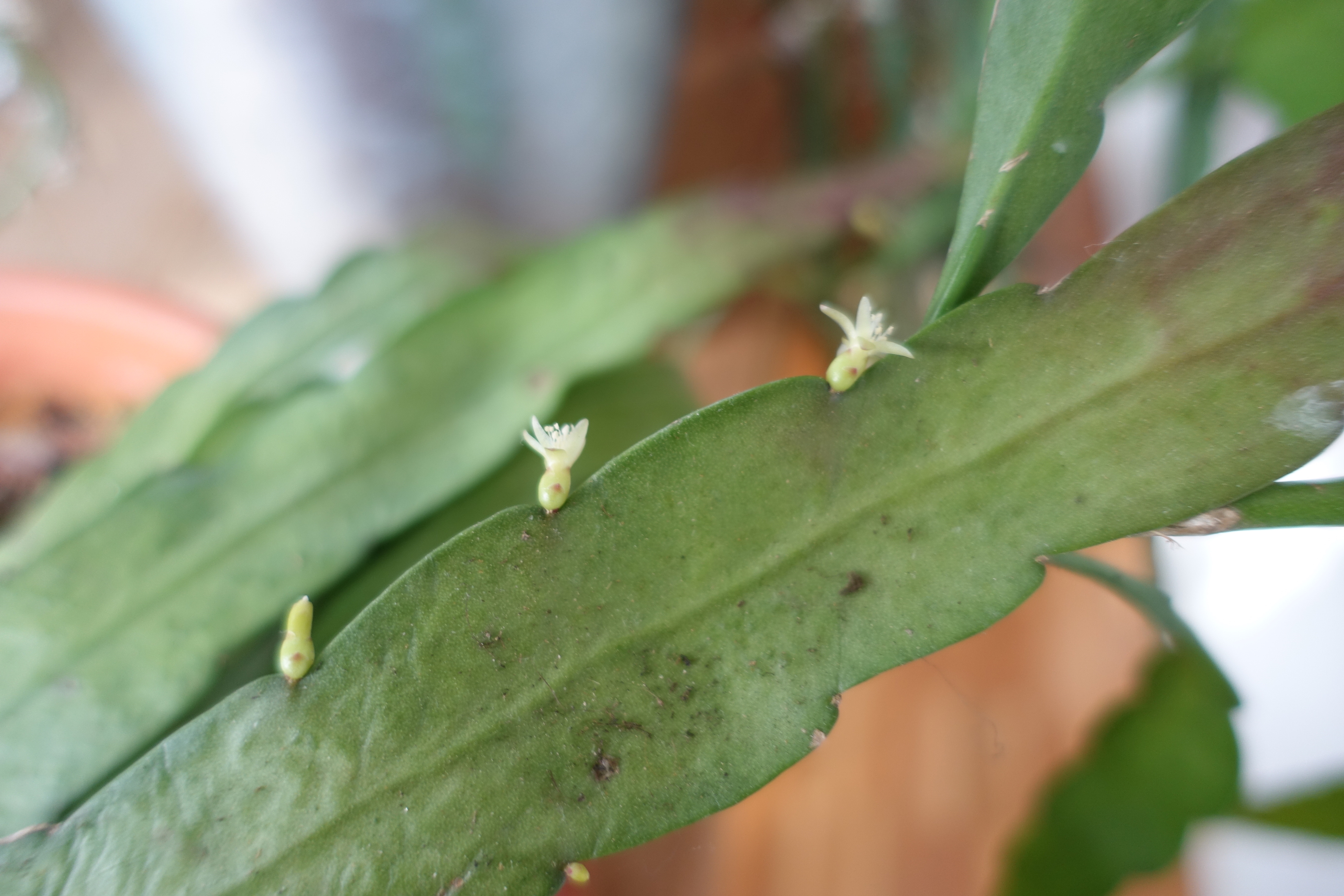 Die als Rhipsalis bambusoides erworbene Hatiora salicornioides (f. cylindrica?) wächst, zu meiner Überraschung, gut bei mir und arbeitet sogar an Blüten