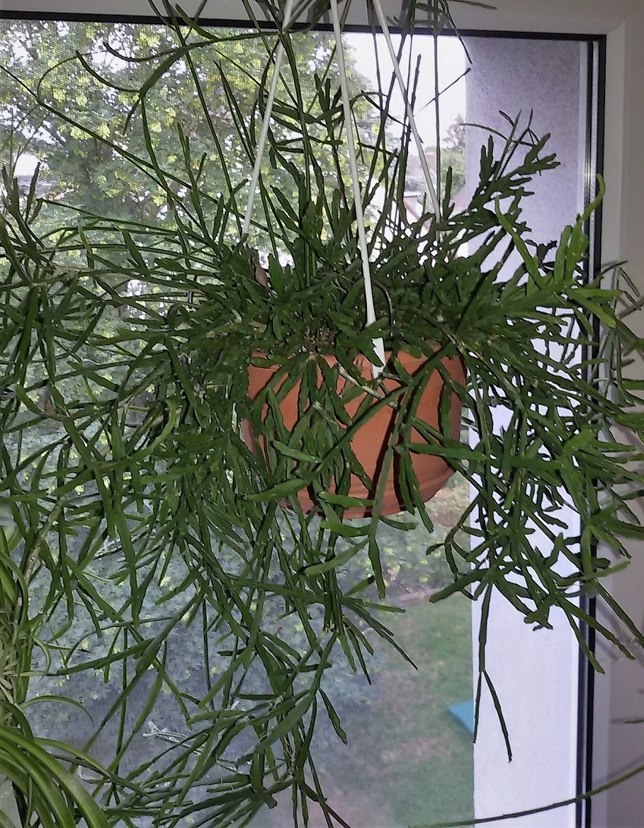 Meine Rhipsalis horrida hat weiterhin mit den Wollläusen zu tun, ich hab grade zuvor erst wieder mit Spiritus betupft. Aber wenn man da nur ein paar wenige übersieht, dann könnnen sie sich wieder vermehren... Die Pflanze als solche schaut ordentlich aus.