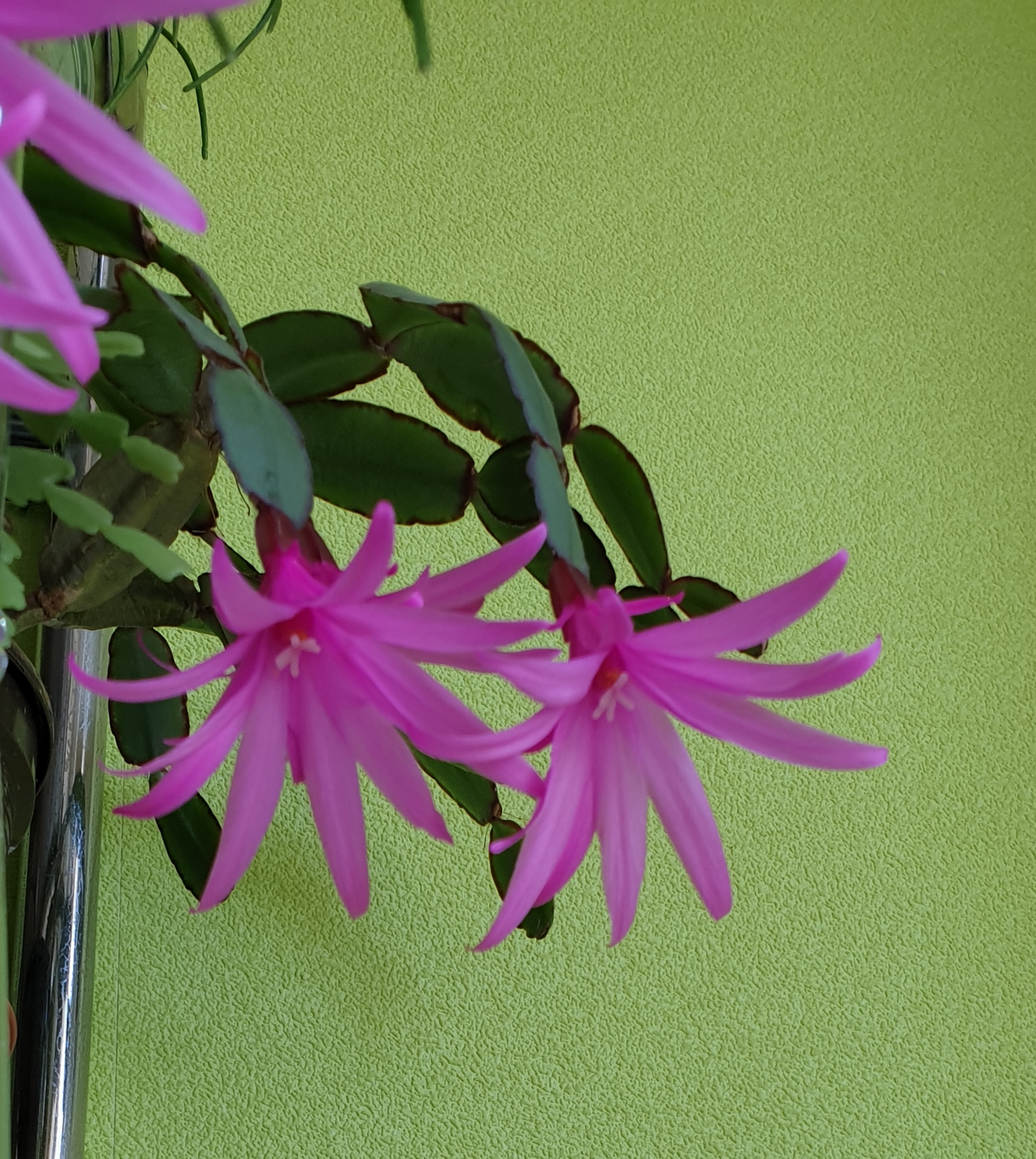 Meine Rhipsalis horrida hat weiterhin mit den Wollläusen zu tun, ich hab grade zuvor erst wieder mit Spiritus betupft. Aber wenn man da nur ein paar wenige übersieht, dann könnnen sie sich wieder vermehren... Die Pflanze als solche schaut ordentlich aus.