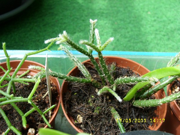 mal eine Rückmeldung von meinen Rhispalis. Sie stehen ja nun seit Anfang Mai draußen und sie treiben alle, bis auf die R. ewaldiana, fleißig aus Und... sogar die paradoxa macht nun neue Triebe