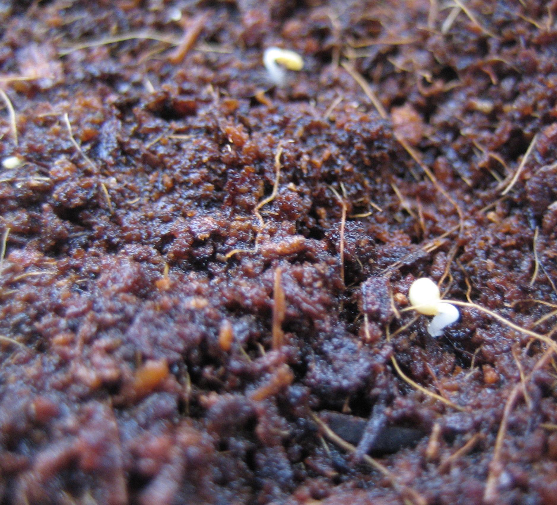 Einfach nur Kokoshumus.Ich habe sie auch nicht mit Frischhaltefolie,oder etwas anderem abgedeckt,sodern mehrmals täglich mit Wasser besprüht und einfach die Keimbox auf die Heitzung gestellt.