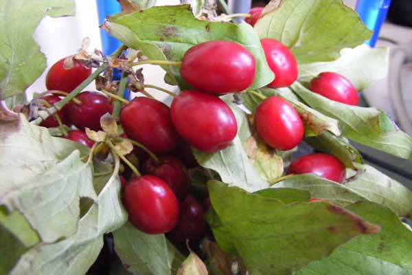 Und dann noch der zweite Busch, den ich nicht identifizieren kann: kleine kirschenähnliche Früchte.