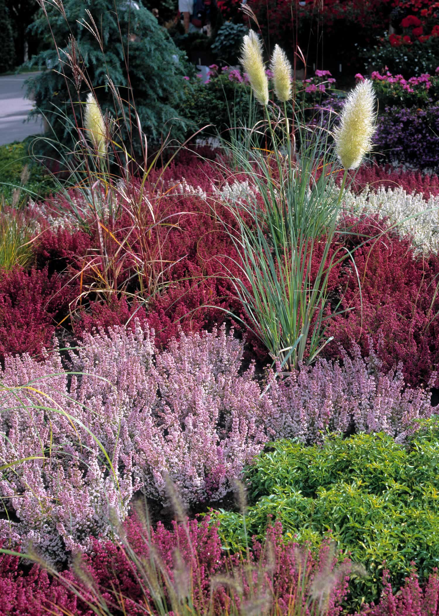 Herbstzeit ist Heidezeit. Rund 40 Millionen Erika erobern dann Schalen, Kästen und Beete. Parallel dazu wächst rasant die Menge der als Herbstschmuck gepflanzten Besenheide (Calluna vulgaris). Während die Verwendung der Topferika für den herbstliche Bepflanzungen schon lange Tradition hat, erfreuten sich bis vor 15 Jahren nur die Besitzer von Heidegärten an den schönen Farbtönen der heimischen Besenheide und ihrer Sorten. Denn nur mit dem dort vorhandenen Platz gelang es, frühe, mittlere und späte Sorten so zu kombinieren, dass eine lang andauernde Blütezeit vom August bis in den Oktober entstand.