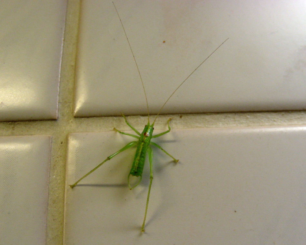 Bisher kamen im Herbst die Spinnen rein , jetzt sind es schon die Heupferdchen