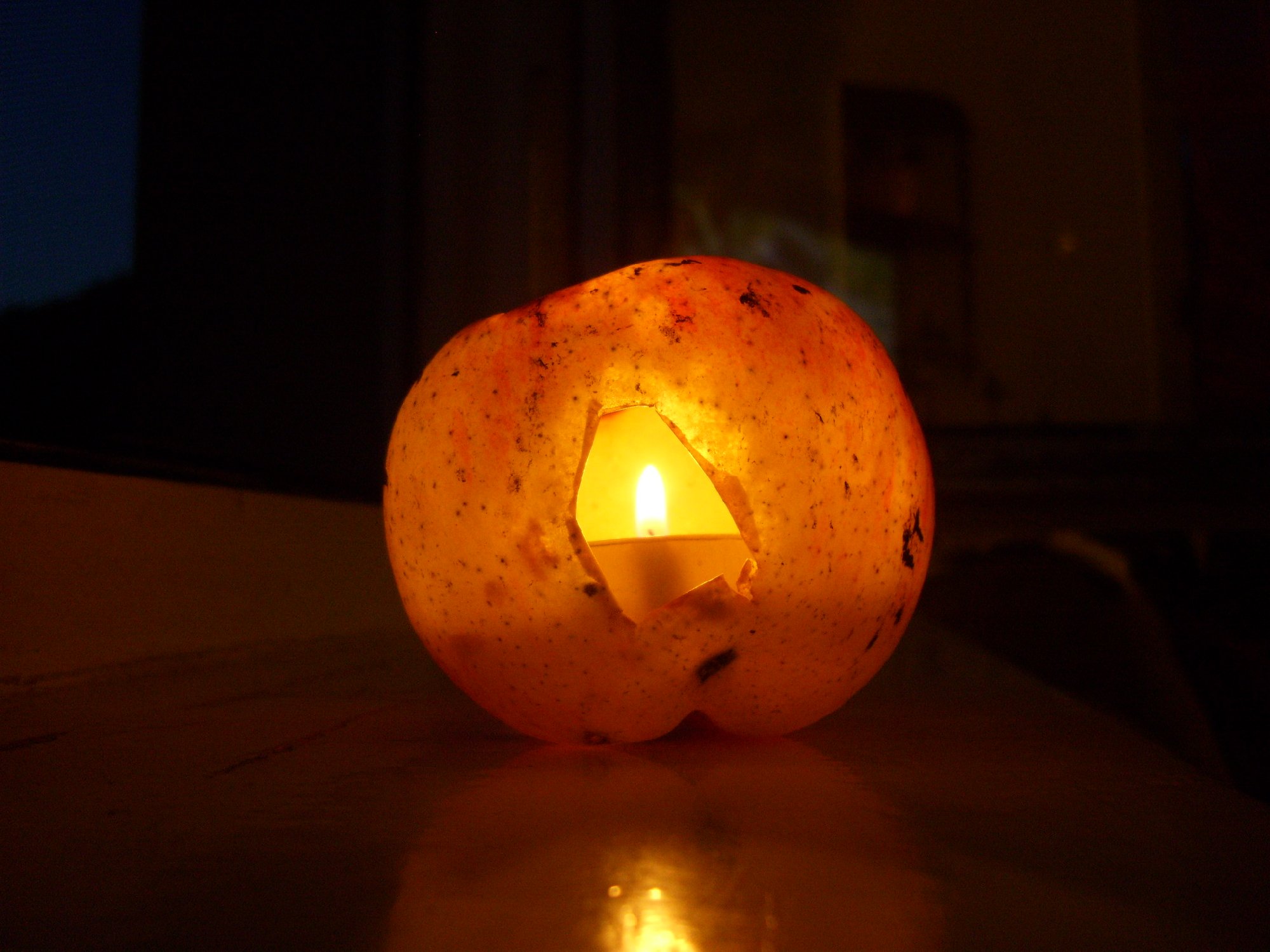 Leider sieht er heute schon nicht mehr so schön aus. Aber als die Schale vorhin etwas angegokelt wurde roch es lecker nach Apfel