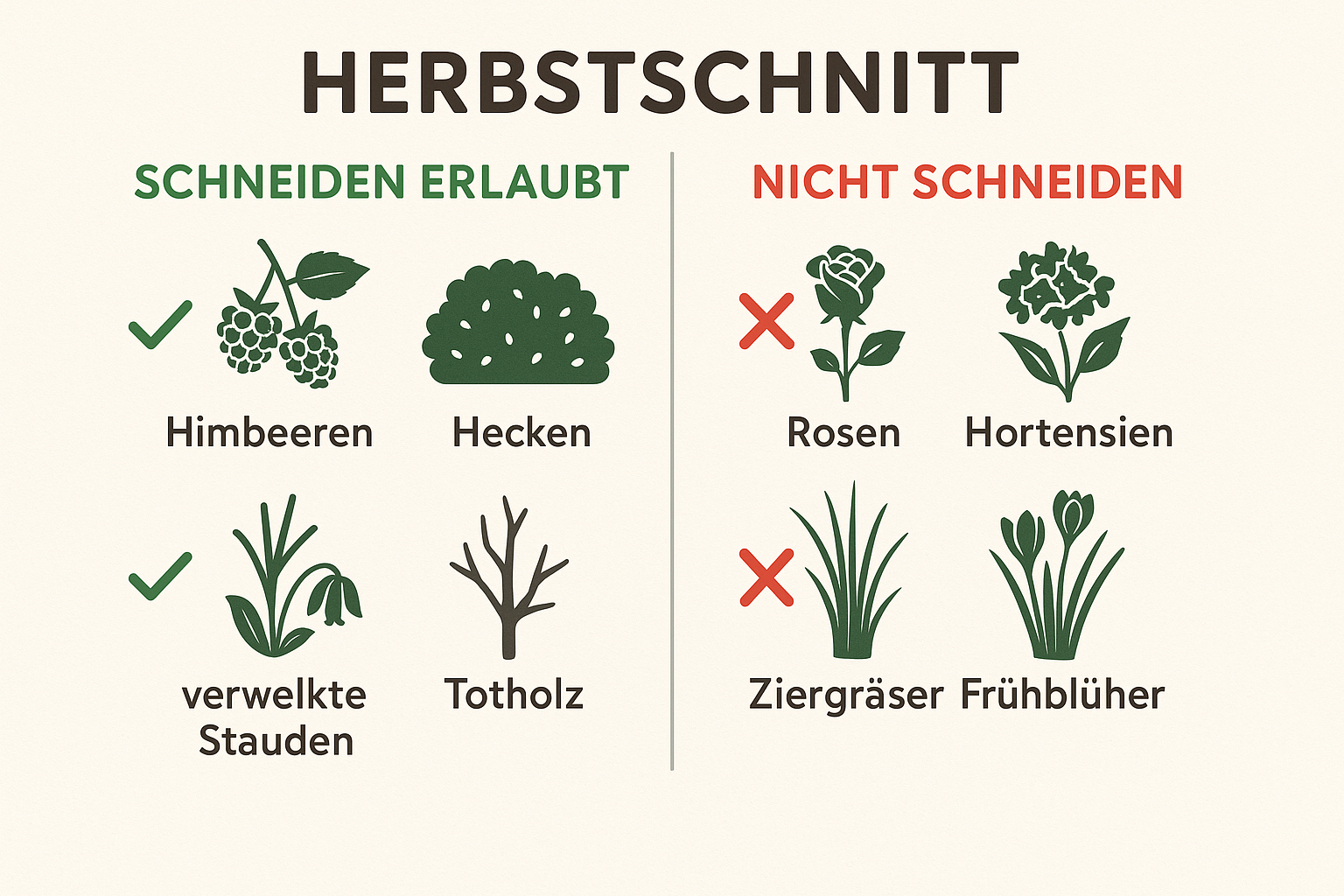 Der Herbst ist da und mit ihm der Drang, im Garten für Ordnung zu sorgen. Doch Vorsicht: Der Griff zur Gartenschere ist jetzt ein zweischneidiges Schwert. Während einige Pflanzen einen Rückschnitt dringend benötigen, kann er für andere das Todesurteil im Winter bedeuten. Wir schaffen Klarheit und präsentieren die ultimative JA/NEIN-Liste für den Herbstschnitt.