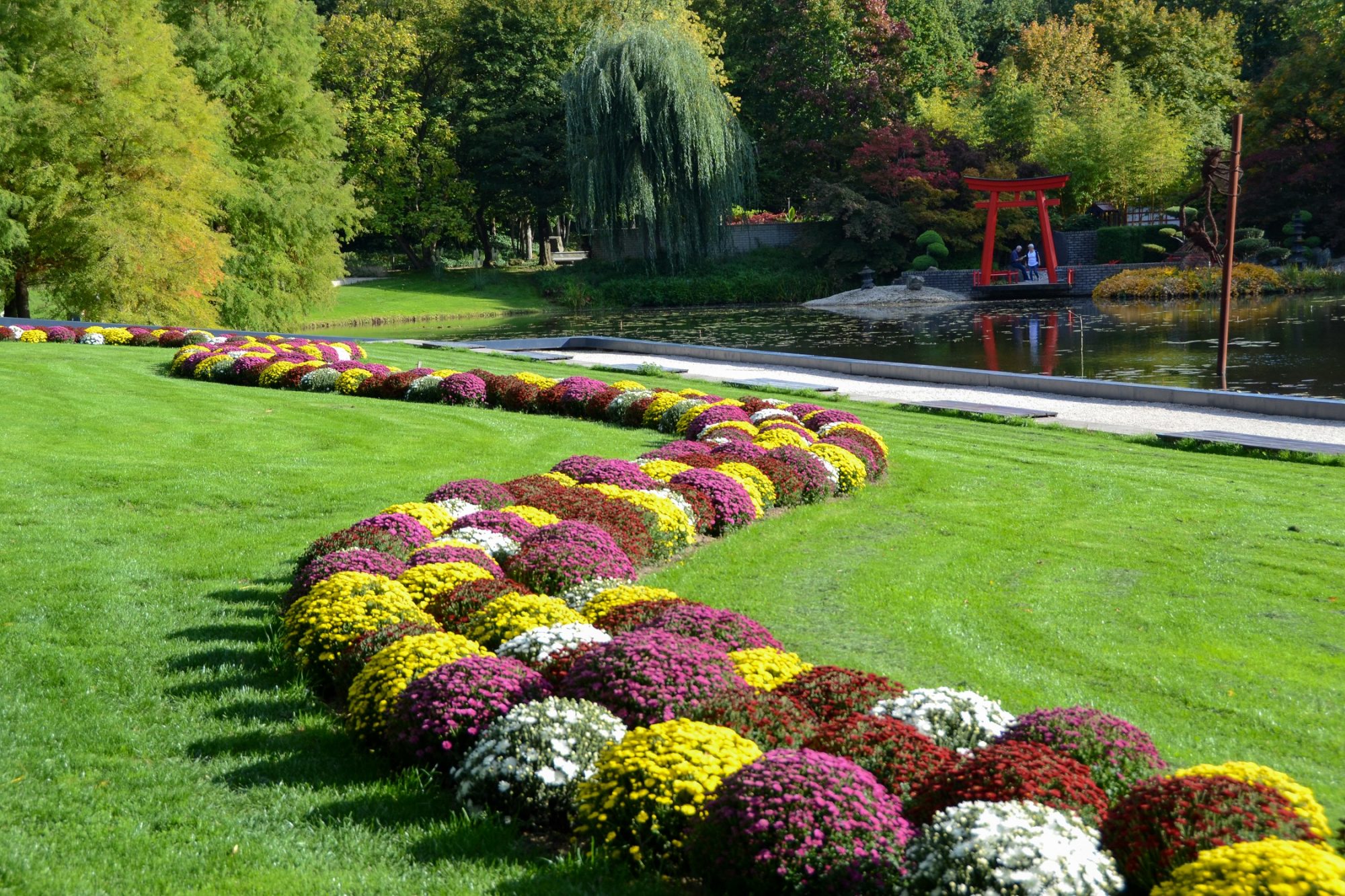 Bis zum Saisonende am 3. November strahlt der Park in den lebendigsten Herbstfarben. Zahlreiche Herbstblüher und farbenprächtige Bäume setzen farbliche Akzente. Ab Mitte September wird die Wechselbepflanzung vorgenommen: Farbenfrohe Chrysanthemenkugeln schmücken den Blumenpfad am Großen Teich, während Heidepflanzen und andere Herbstblüher die Beete und Pflanzkübel bereichern. Besonders beeindruckend ist der Japanische Ahorngarten mit seinen leuchtend roten und orangen Blättern. Bei mildem Wetter im Oktober lassen sich zudem im Rosarium noch zahlreiche Rosenblüten bewundern. Der Park bleibt täglich von 10 bis 18 Uhr geöffnet.