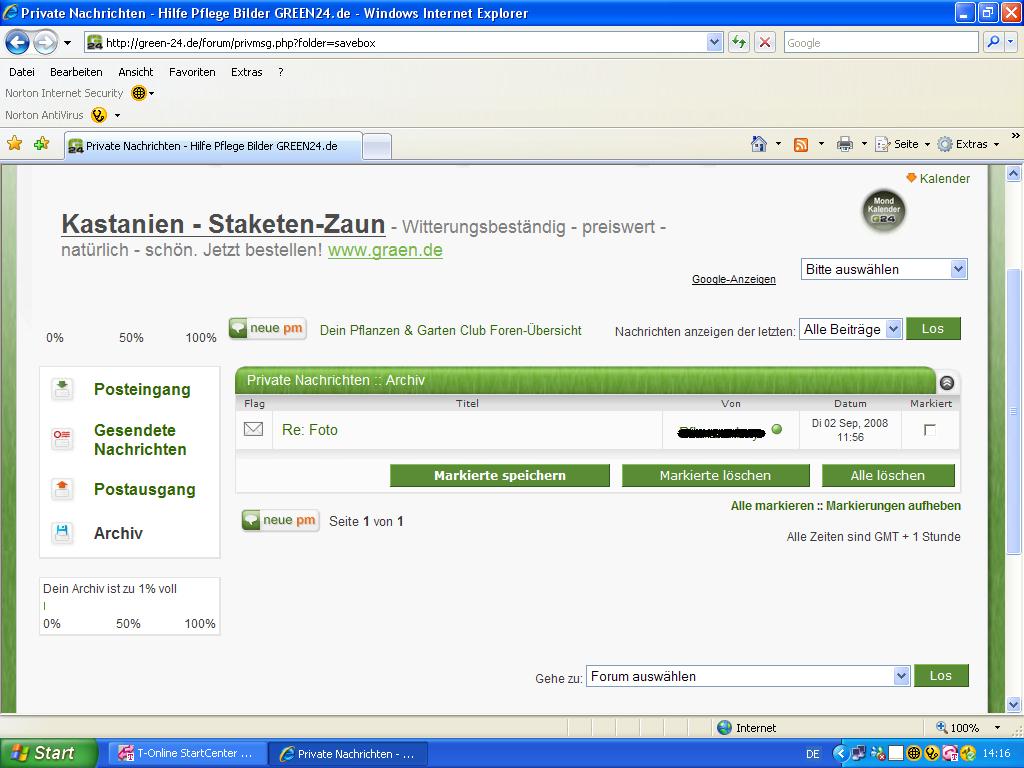 und zwar sehe ich grad, daß ich in den privaten Nachrichten eine PN drin habe, die aber im Archiv ist und ich nicht öffnen kann