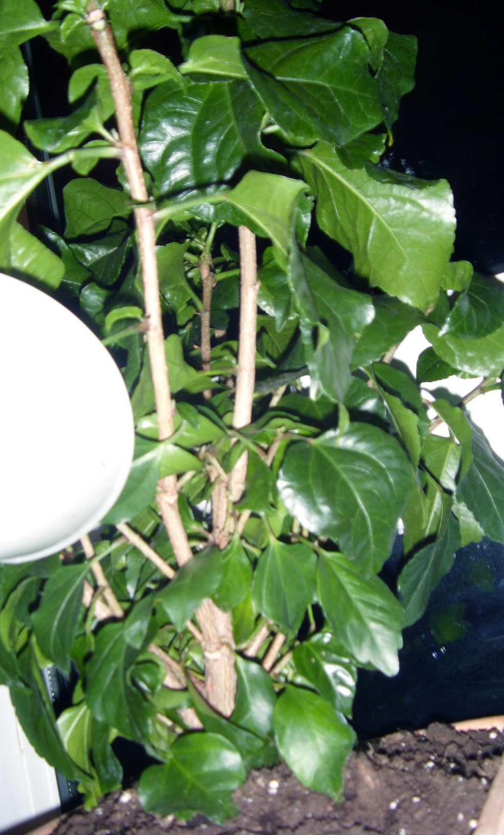 - Wie findet Ihr denn ganz spontan die Form? Würdet Ihr sie so belassen oder designtechnisch noch etwas herumschnibbeln? Aus meiner Sicht gleicht die Pflanze eher einem gedrungenen Busch. Mir fehlt etwas die Struktur und vielleicht sinds auch nur zuviele Blätter, s.d. keine Sicht auf die Verästelungen möglich ist. Bin mir darüber einfach noch unschlüssig, aber momentan gefällt mir die Form noch nicht ganz (im Gg.satz zum Vergleichs-Hibiskus)...