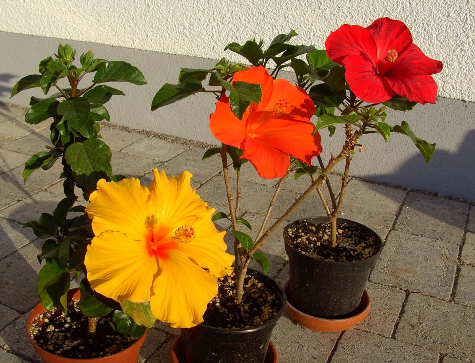 Mich haben heute Morgen gleich alle drei Farben der Dehneriensis-Hibis begrüßt. Die haben so geleuchtet, dass sie Fotos unscharf wurden.