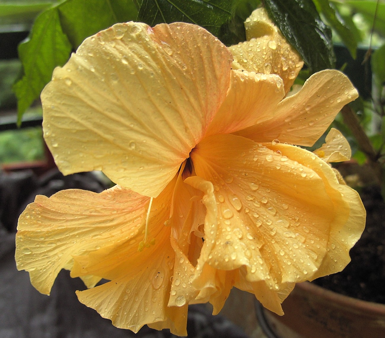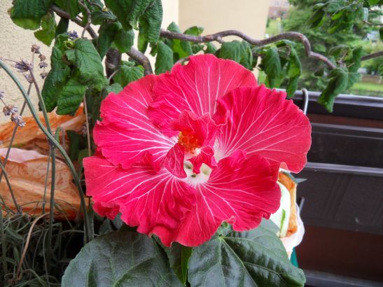 Meine Hibis haben sooooo vielversprechende dicke Knospen, aber bei dem Wetter wird und wird das nix. Schon wieder unter 10 Grad die Nächte! Nur mein lachsfarbener blüht unbeirrt pausenlos weiter! Freut sich wohl doch über den neuen Topf ganz für sich alleine, auch wenn er so viele Wurzeln lassen musste. Und Zimtspinne hat recht, die Blüten halten zur Zeit richtig lange, fast eine Woche sogar, glaub ich! Und sehen selbst regennass noch schön aus...