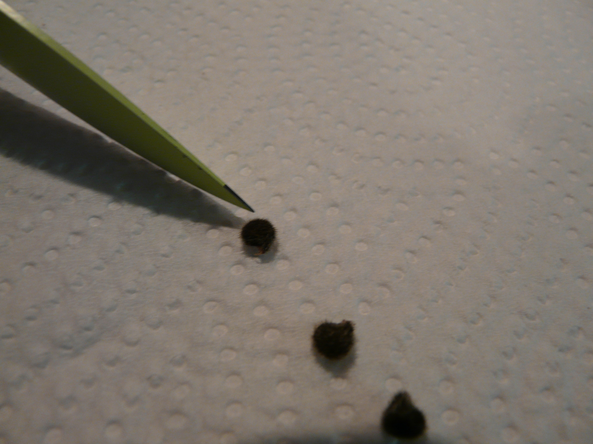 Hatte eine Kapsel die vorher abgefallen war und die natürlich auch aufgemacht aber in den Kammern waren ganz kleine Minikörnchen...etwas größer als Salz und braun.