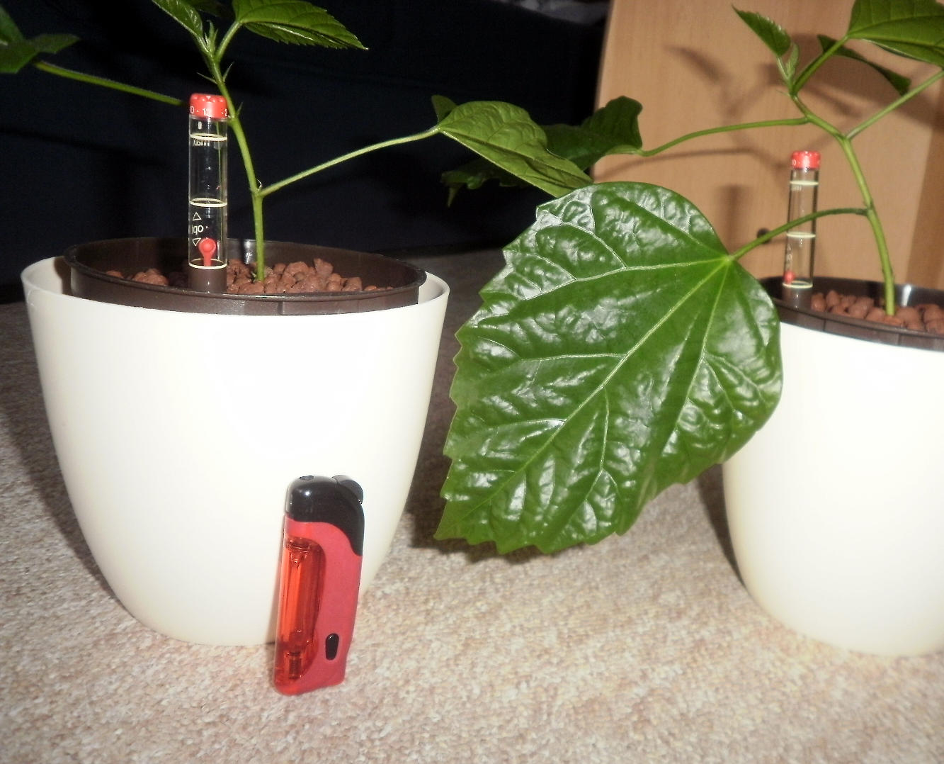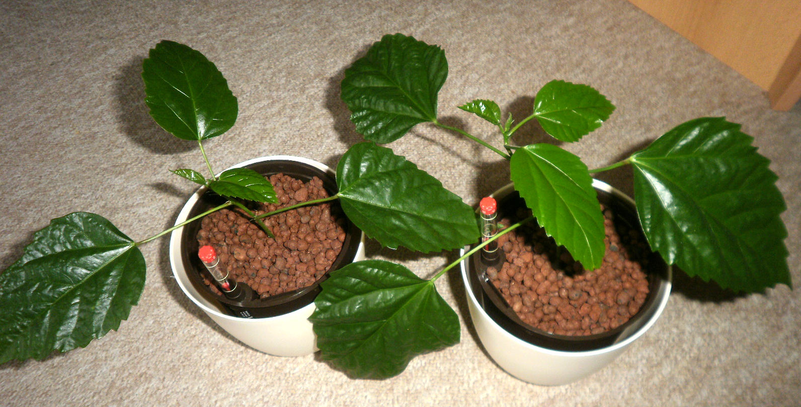 Meine Kollegin hatte einen Notschnitt an der Pflanze durchführen müssen, weil sie sich dieses Frühjahr unheimlich ausgebreitet hat und stellte die Stecklinge in ein Wasserglas. Wo sie zarte Wurzelcallus ausbildeten, habe ich sie mitgenommen und gleich auf Hydro gesetzt. Sie sind ohne überhaupt ein Blatt zu knautschen gleich in Hydro angegangen und haben schon 2-3 neue Blätter gebildet. Sie sind also in Hydro gut angegangen.
