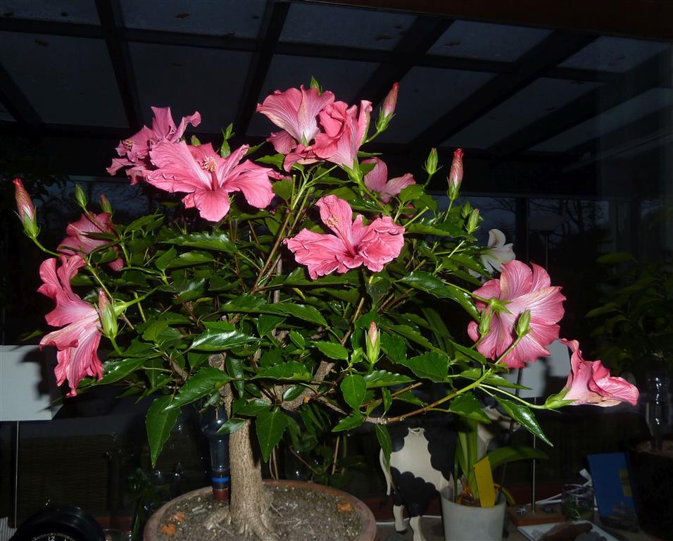 Gut, von meiner Seite aus gibt's auch nicht allzu viel zu berichten. Im Wohnzimmer, da wo meine Hibis alle stehen, heize ich kaum (nur auf niedrigster Stufe, wenn überhaupt). Deshalb wachsen und blühen sie nur wenig.