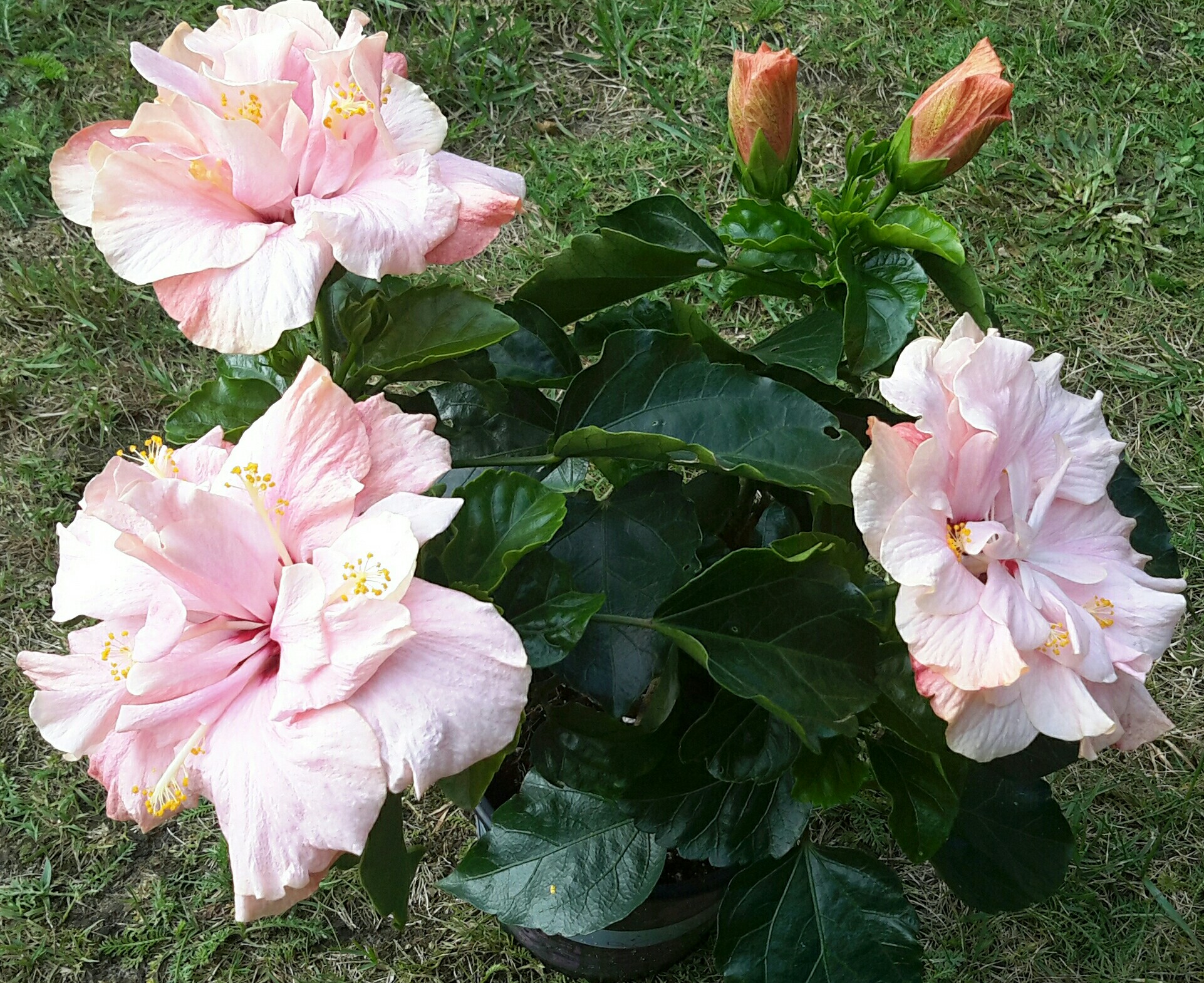 Den Hawaiian Salmon habe ich auch, pflege ihn nicht anders als die rosa-sinensis (also alle gleich schlecht ) und er blüht auch schon. Im Winter ist er mir aber fast eingegangen, Gießen sollte man eben nicht vergessen