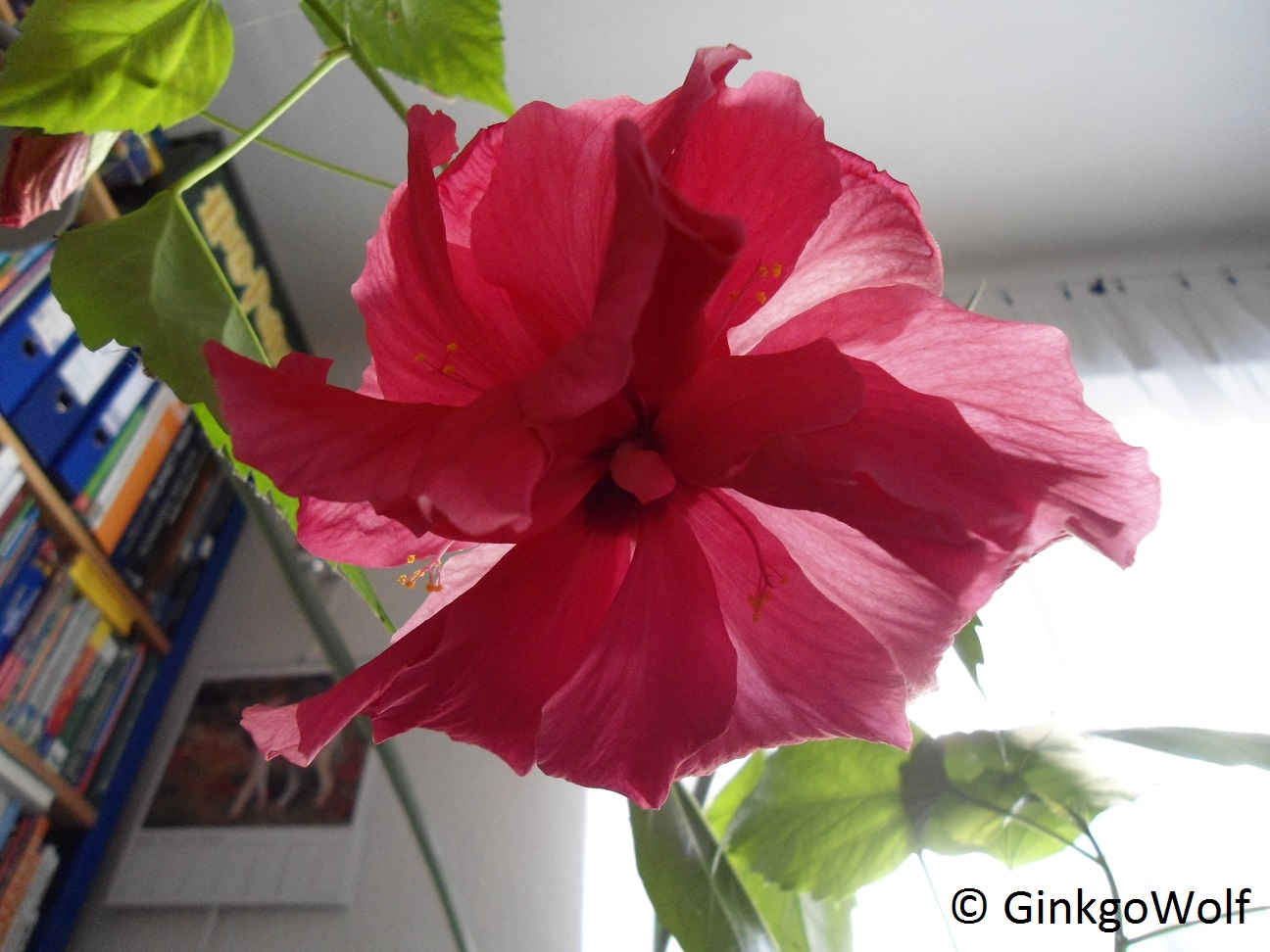 Ich hab zwar nur "normale" Hibis, aber die Stecklinge, die mal bei mir bewurzelt wurden, kriegen auch gerade eine Unmenge an Knospen. Als ich am Wochenende zu Hause war, konnte ich die Blüte der Mutterpflanze bewundern, da sie inzwischen aus dem schönen Sachsen-Anhalt ins ebenso schöne Brandenburg umgezogen ist. Und ich war nicht minder erstaunt, als ich entdeckte, dass die rote Blüte gefüllt ist.