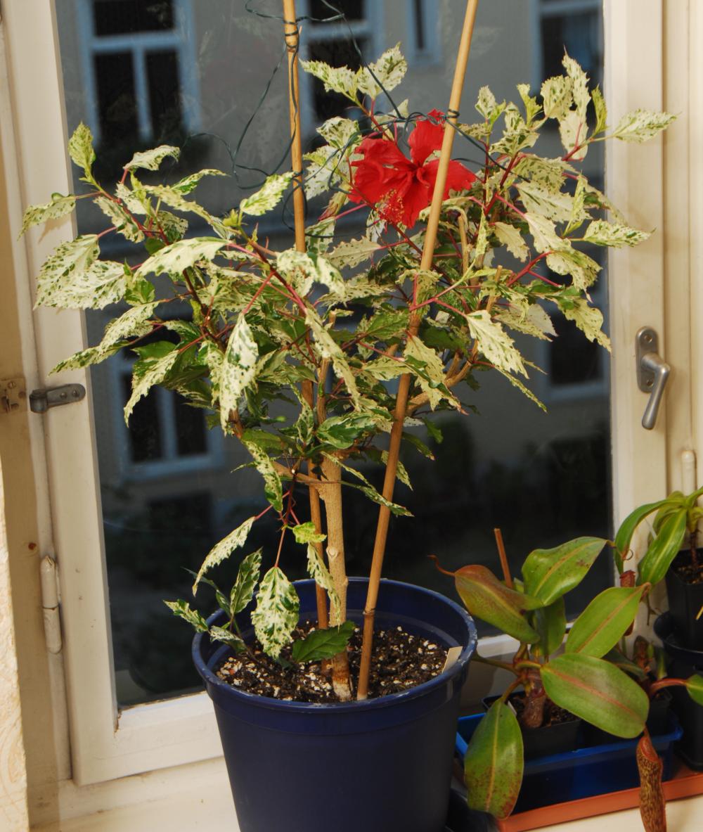 Ich hab meinen panaschierten Hibiskus vor ein paar Wochen auf ein Hochstämmchen zurückgestutzt. Er ist jetzt wieder super ausgetrieben und erste Knospen sind auch schon da.